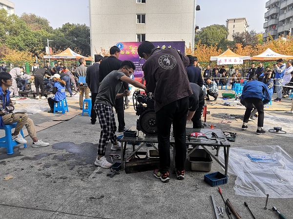 2017级车辆工程专业的李兴州、完颜进嵩、蔡明宇三人组成的拆装团队在技能赛中表现突出,拆装一台CZ380柴油发动机比赛用时47分钟22秒,操作规范、娴熟,发动机一次性启动成功。他们在近两个月的训练中,指导教师积极准备,从虚拟设计、仿真实验、实践操作技能等三个方面对参赛学生进行了系统的培训与指导。一次次重复的训练,提升了团队默契、提高拆装速度、保证拆装准确度。凭借对拆装浓厚的兴趣,参赛队员们每次完成后都很有“成就感”,动手能力得到极大的提升。该比赛要求学生在理解原理的基础上,完全掌握船用柴油机的结构、拆装工艺和故障检测维修的知识才能获取好成绩。同时,该赛事要求过硬的理论知识,扎实的实践动手能力和空间想象能力,默契的团队协作能力以及队长的领导力。