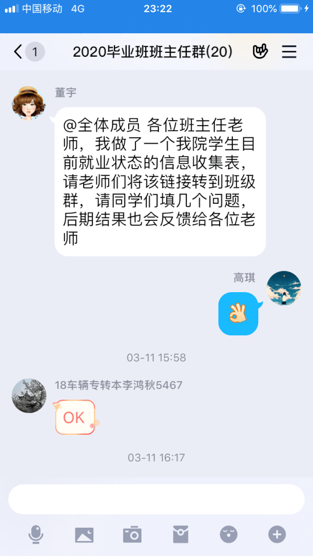 大四第一学期刚开学,王奕就召开了2020届毕业生就业动员大会,开展第一次摸底工作,重点调查学生就业意向,包括岗位意向、薪资意向和地点意向;12月统计考研报名情况,开展第二次摸底,了解学生参加各类招聘会的情况,及时进行简历制作、面试技巧等方面的指导;2020年2月开展第三次摸底调查,了解研究生初试成绩,摸排学生实习情况;3月开展第四次调查,了解学生就业情况,有针对性地推送招聘信息。