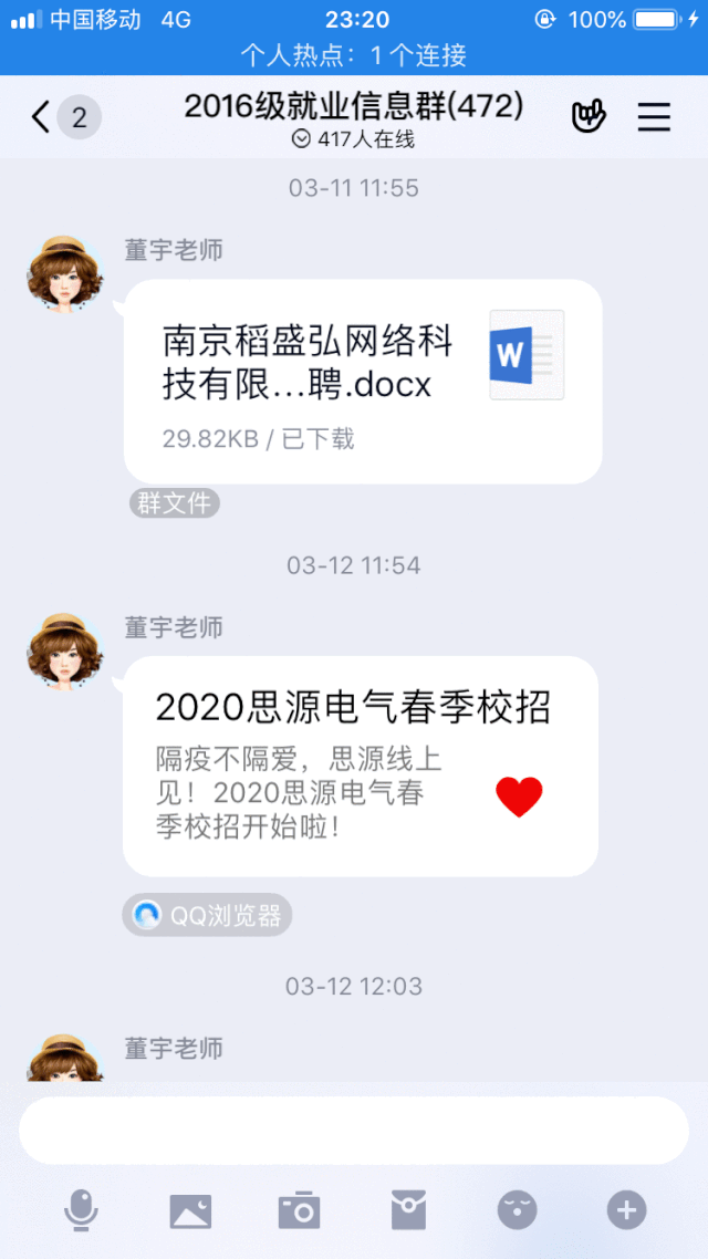党委高度重视,辅导员、班主任们为毕业生提供24小时的网上招聘服务,充分发挥互联网的优势,整合各类资源,创新工作形式,积极实施“就业服务不打烊,网上招聘不停歇”的线上春风行动。由“面对面”转为“线连线”,为毕业生提供线上空中宣讲、简历修改指导、用人单位推荐、招聘信息推送、视频面试技巧分享、就业创业指导、政策宣讲咨询、考研院校调剂信息推送等一站式服务。