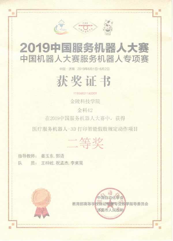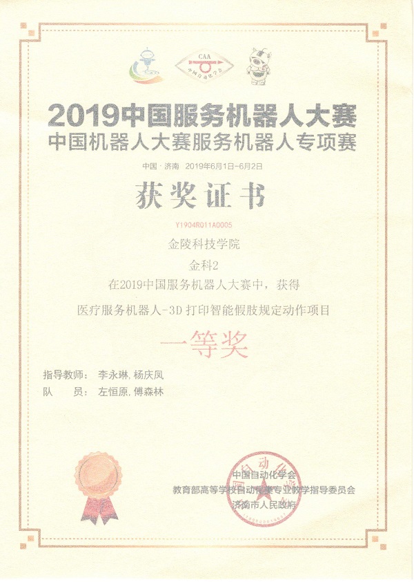 实验中心主任周洪、楼宇智能系教师姜玉东、李永琳以及机械系教师郭语指导的三支学生参赛队伍分别获得医疗服务机器人3D打印智能假肢规定动作项目一等奖和二等奖,物流服务机器人物流分拣项目一等奖。电影天堂