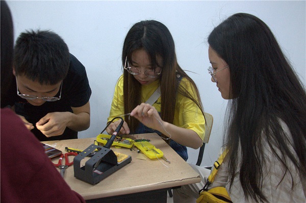 在科技生活小发明制作比赛中,参赛选手分别制作温控电风扇和简易对讲机,开展电路设计以及焊接等工作。为了提高大赛的技术含量及同学们的动手能力,学生会科技部邀请了学生科创研发团队优秀学生对参赛同学进行了技术讲解和集体培训。比赛制作过程中,同学们全神贯注,配合默契,技术娴熟,全部通过验收,学院对获奖学生进行了表彰。