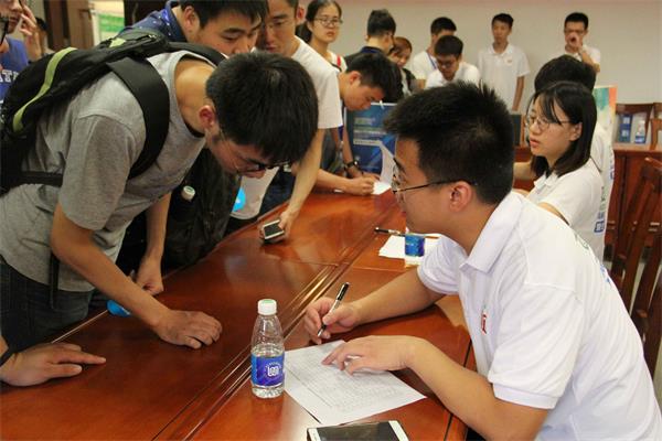 组织辅导员老师对志愿者进行了选拔,同学们热情高涨,踊跃参加。为了更高效、更有序地为大赛服务,本次活动志愿者分为高校对接组、宾馆组、会场组、礼仪组。活动前一天,高校对接组的志愿者们就开始与高校参赛队伍的领队进行联系,统计他们到达酒店的时间和参赛人员数目,与宾馆组的志愿者们紧密合作。由于各高校到达的时间差异比较大,因此志愿者们早上7点就来到酒店准备,在参赛队伍到达后分发证件并全程陪伴。面对来自四个不同省市的多个团队的不同情况,志愿者们耐心地一一沟通,完成信息的同步,并为各团队的特殊情况做提前的准备。由于路途拥堵,有些参赛队伍到深夜才抵达酒店,此时志愿者们依然坚守岗位,并以良好的精神面貌完成了服务,很多参赛队伍对此非常感动。