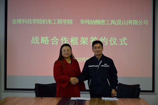 与华伟纳精密工具(昆山)有限公司在昆山华伟纳公司签订校企合作协议,就人才培养、基地建设、实习就业等领域开展全面合作。华伟纳精密工具(昆山)有限公司总经理周艳君、人事行政部经理朱娟、电影天堂