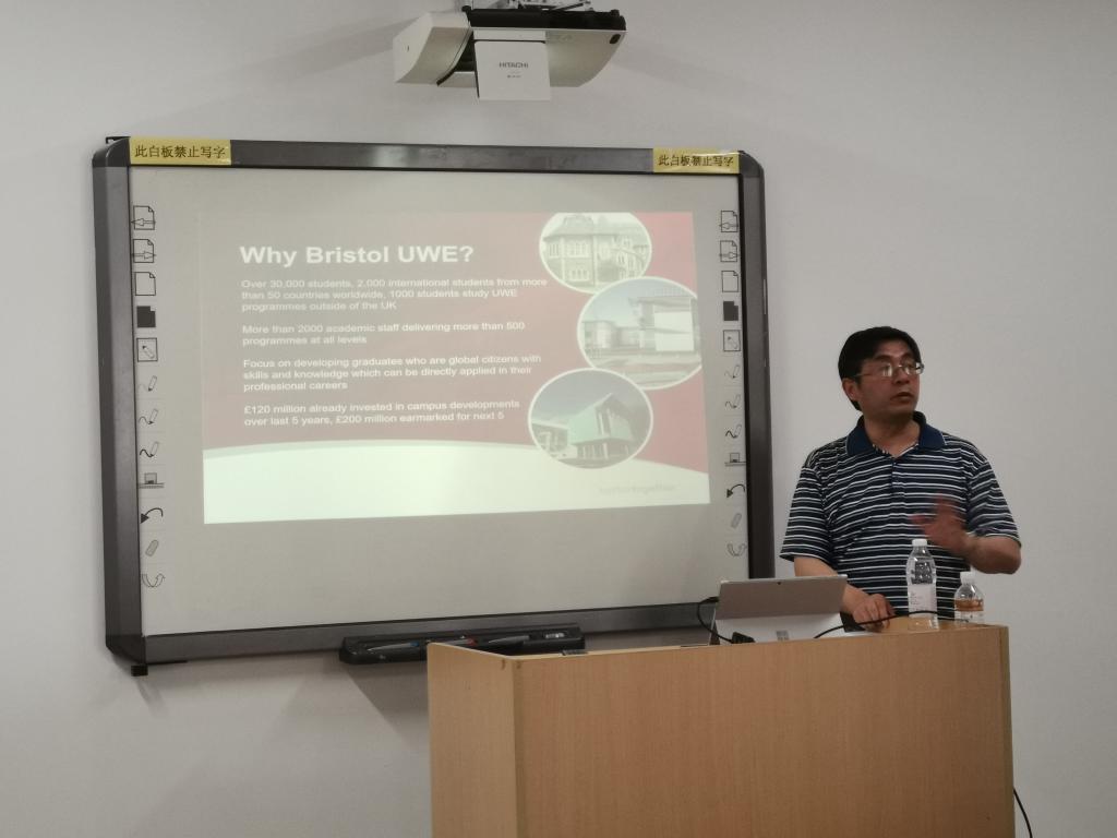,以“英国西英格兰大学的本科和研究生教育”为题,为师生们做了一场精彩的教学交流讲座。