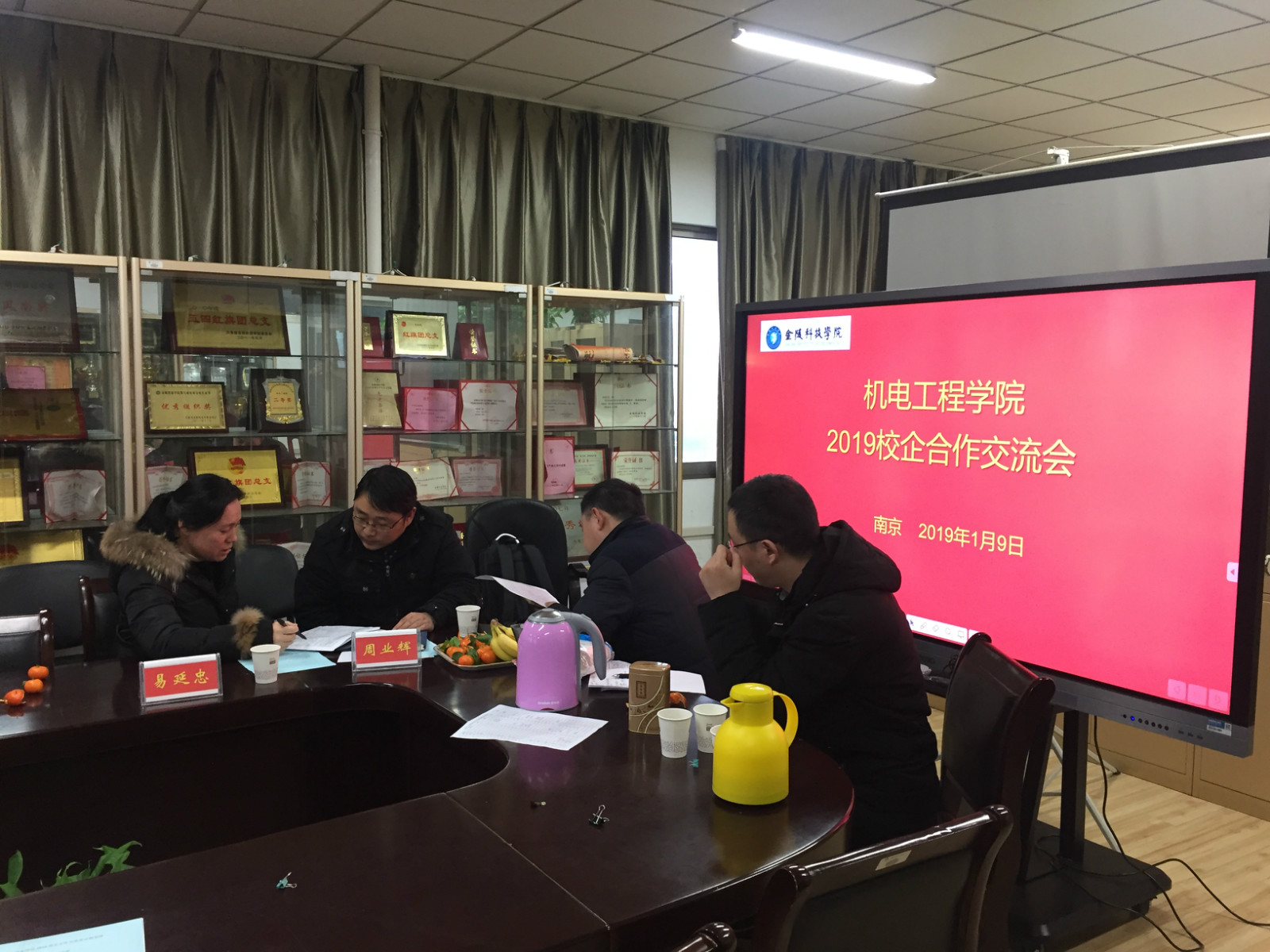 南京梅山、上汽集团南京汽车集团工程研究院、南京苏瑞科技南京中竞科电子、江苏德劭、南京佑鼎自动化、南京云开数据、南京如燕等企业领导冒雪来校对接,鞠全勇院长及学院科研骨干教师参加了此次交流会。会议由于继明副院长主持。
